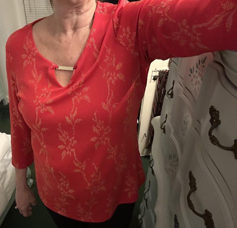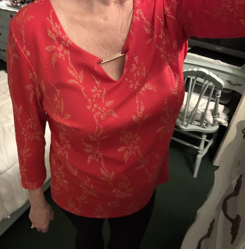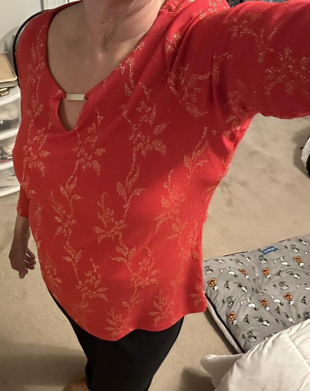 I received many compliments on this top at a holiday party. Very nice and soft material. Only downside is the underlying lining under the keyhole doesn’t lay/stay flat. Would highly suggest for holiday parties!
