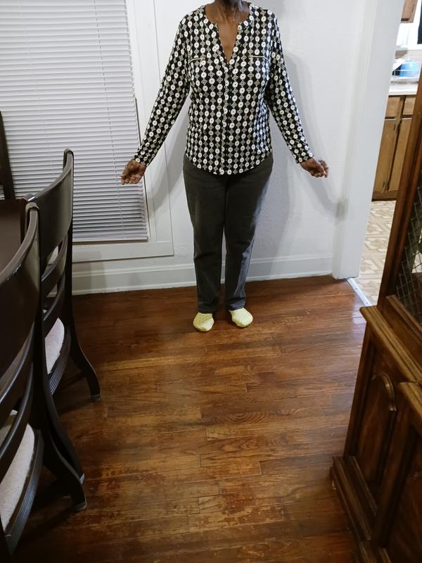 The Fran Foulard Zipper Pocket Long Sleeve top is chic, elegant and a true fit to size. The gold tone zipper and v-neckline make it easy to dress up or down depending on the occassion. The sleeves are just the perfect length for this season.