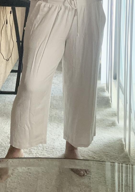 Dressy , quality made and quality linen pants! Better than the photos. Creamy white and strong, comfortable waist band. Pockets aren’t sticking out and the lining isn’t heavy or hot. A great buy and can easily be worn for dressy occasions. They don’t cling and fall gracefully. A great find !