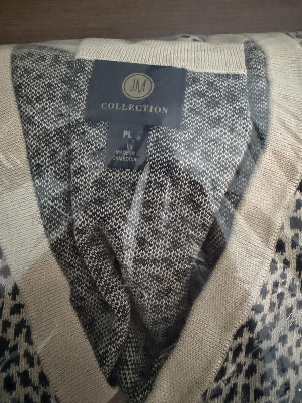 Well, it’s that time of year again. the time that you don’t want to wear your jacket or that heavy sweater instead you just need that lightweight comfortable sweater. So here’s your sweater, This JM collection is the perfect sweater for you. lightweight comfortable perfect to size and it’s something you probably wouldn’t pick for your wardrobe. You’ve got the black, white, and probably have the red sweater for Christmas. This sweater is The animal print that probably is out of your comfort zone. That’s what it was for Me, a pattern that was kind of out of my comfort zone. But it goes great with a pair of jeans, brown, black pants and it’s fun. Everybody loves it. Oh that’s a nice sweater, everyone compliments Me, so I’m happy with my choice something fun, exciting and comfortable