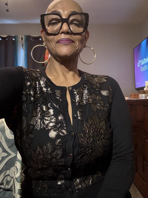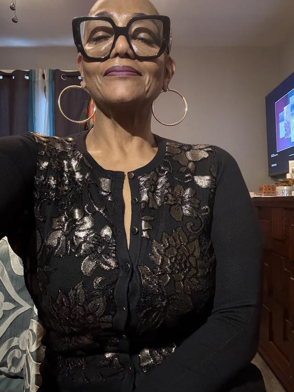 Women's Metallic Jacquard-Front Party Cardigan, Macy's Exclusive