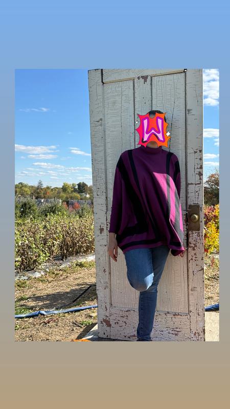 Beautiful & comfy sweater! Definitely size down due to generous cut.
