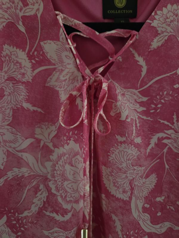 I really like this shirt. The pink is beautiful and perfect for Spring and Summer. It fits beautifully and comes with an attached tank underneath.