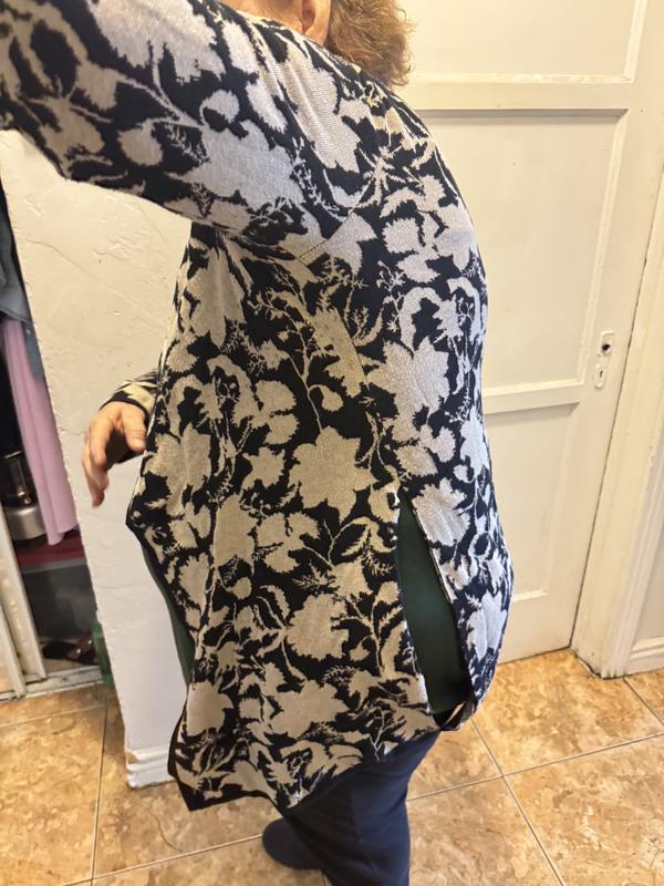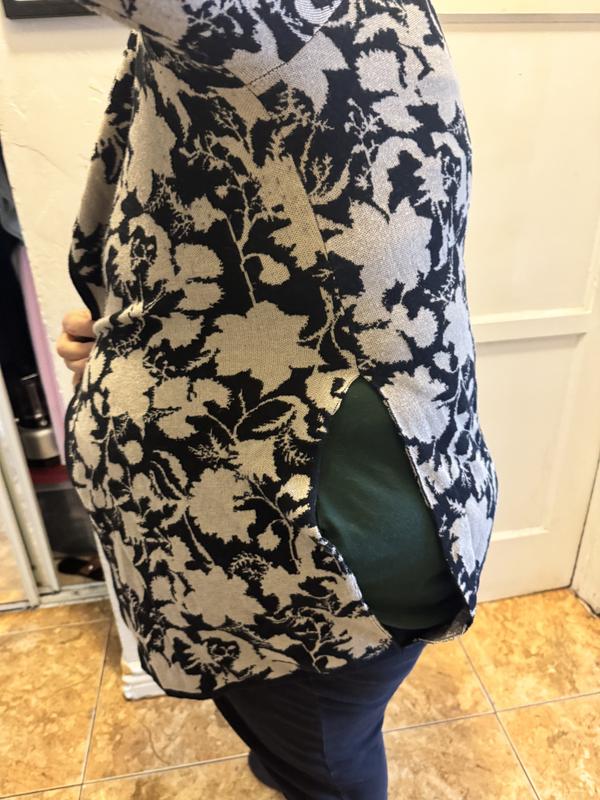I love the print and how soft this cardigan is. However after wearing it for a couple hours I noticed there was a slit. It tore a bit from the side. It is fixable but I was a bit disappointed. I wouldn’t recommend.