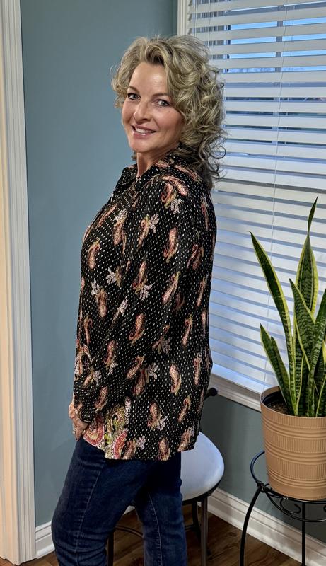 I absolutely love this top! I wore it on New Years and all my family asked where I got it from. It can be worn as casual with jeans or as dressy with dressy pants. The fabric is very soft as well..