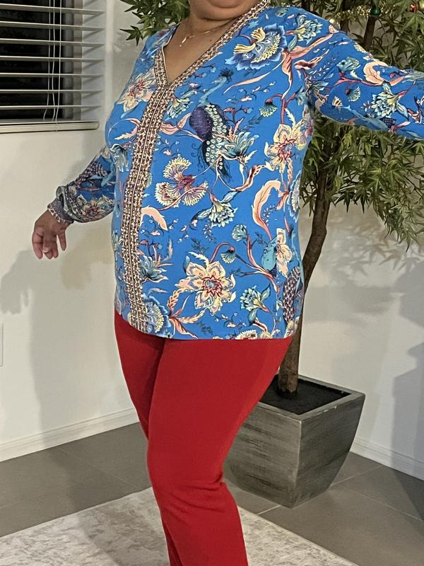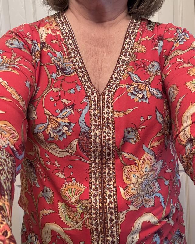 Beautiful fabric and fit, BUT, why add that shiny, garish trim! I returned it, sorry.