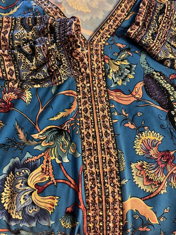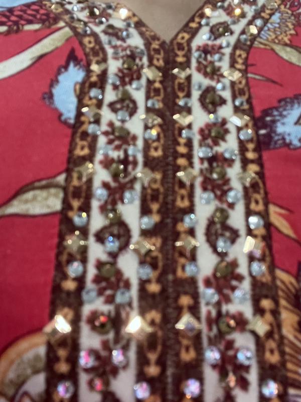Didn't expect all the gold sequins down the front and returned it. Too much bling for me