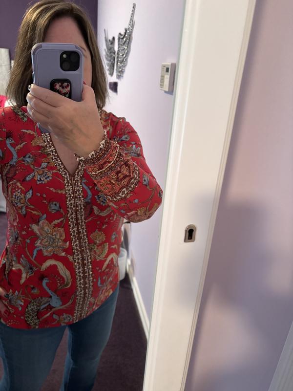 Women's Printed Split-Neck Long-Sleeve Top, Created for Macy's