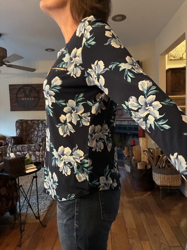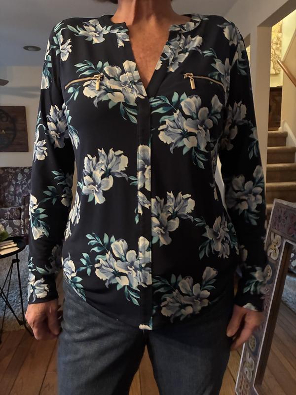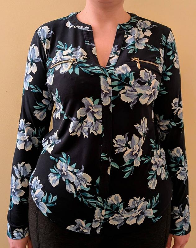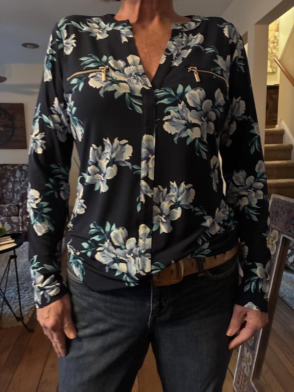 I absolutely love this blouse, and it’s quickly become a go-to piece for both comfort and style. The blue floral print is vibrant and earns compliments wherever I go. Zipper pockets at the chest are a super cute detail. I especially appreciate the soft, stretchy fabric; it feels gentle against my skin and provides just the right amount of warmth for cooler days. I’ve found it pairs well with jeans or leggings, making it versatile for running errands or casual outings. I would highly recommend this top to anyone seeking a comfortable and stylish addition to their everyday wardrobe.