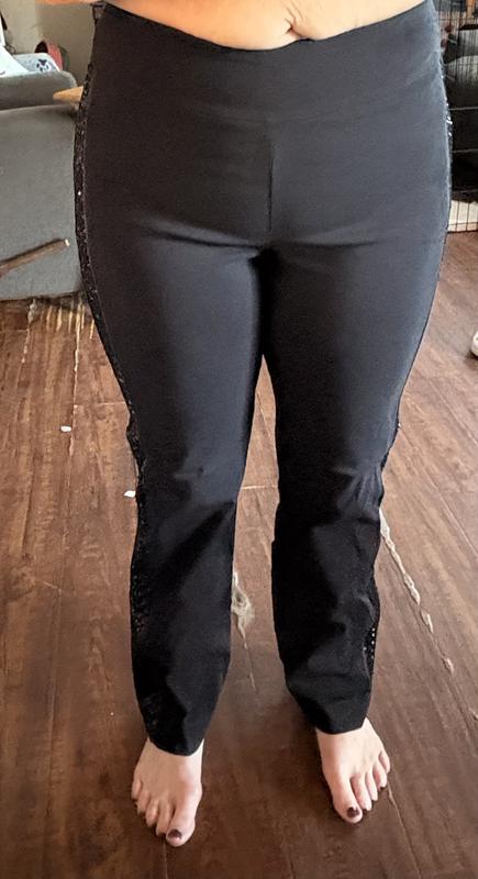 These are very pretty pants. I really like the extra bling they fit you to size I just think after you wash them even in cold water, they come out a bit wrinkled and they do shrink a little bit. They don’t seem to hold their shape but other than that, I really like them I bought them in both colors