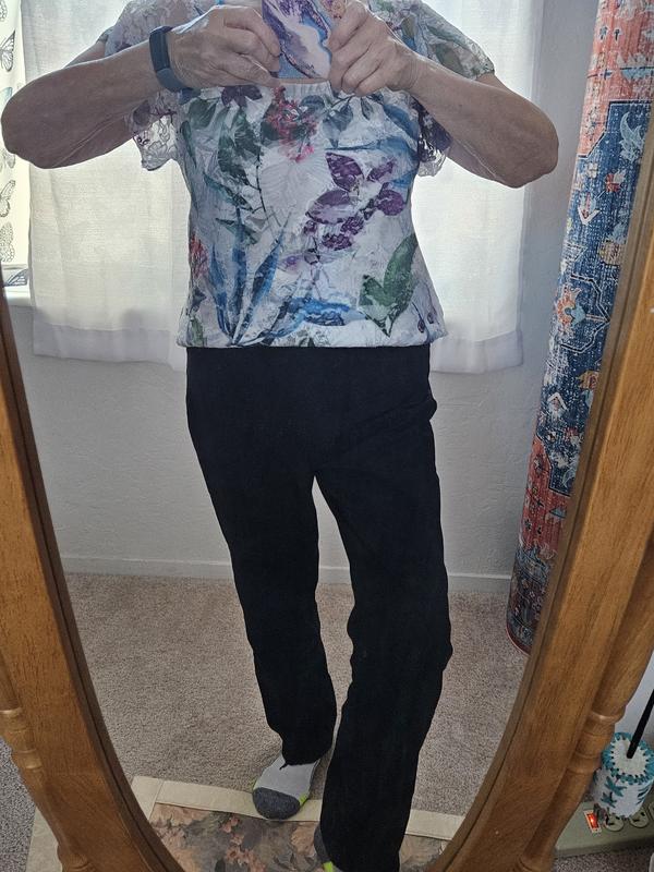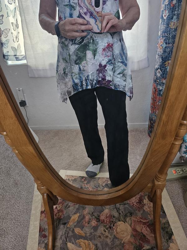 I love these pants! So much so that I’ve bought three pairs. The fit is perfect, the material is great. I feel they are slimming without feeling tight.