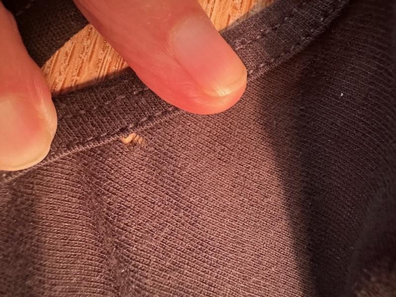 Material separated from elastic seam after one wearing. Similar to a 'run' in a stocking. Even though it is a DEFECT in the material, Macys will not allow worn/washed items to be returned. I do understand Macys obviously not being able to resell the item. But stand by your products and at least offer a refund for defective material!!