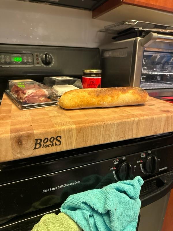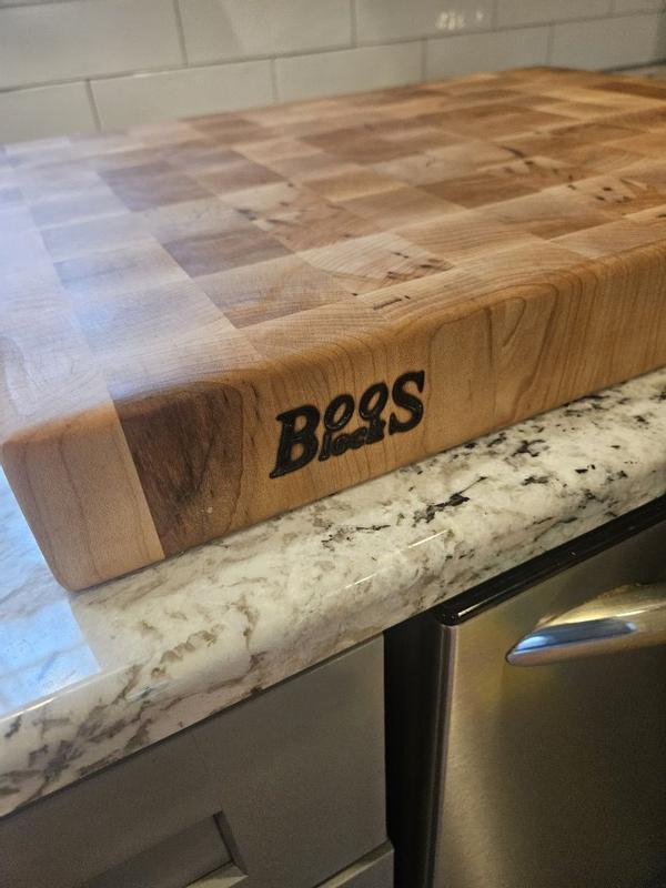 I have wanted a John Boos cutting board like this for a very long time and I’m thrilled to finally own one. It is everything I expected, very good quality. I haven’t actually used it yet because I want to order their proprietary board oil and get it all nice and conditioned before I start using it. It does feel a little dry so I think it’s important to do that before use. It did come with a sample of their board conditioning cream but my understanding is that you’re supposed to use that after the oil, to sort of seal it in. It did come with one tiny little scratch but I think it won’t be noticeable after I do the oil and cream treatments.