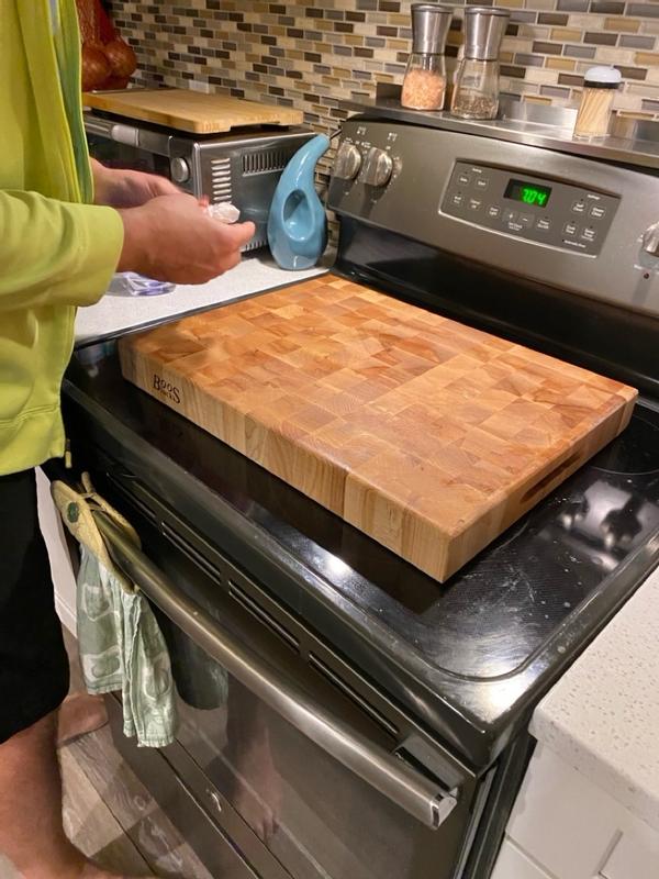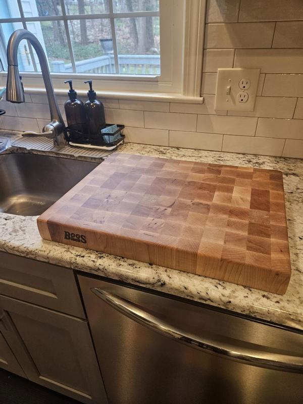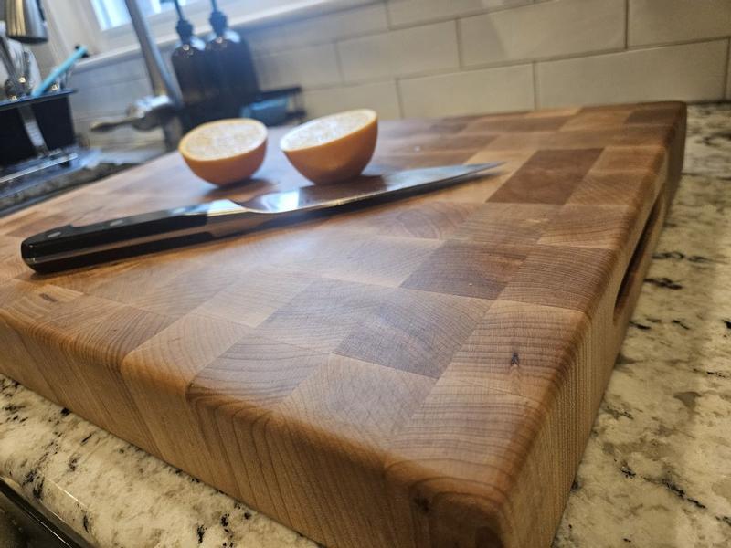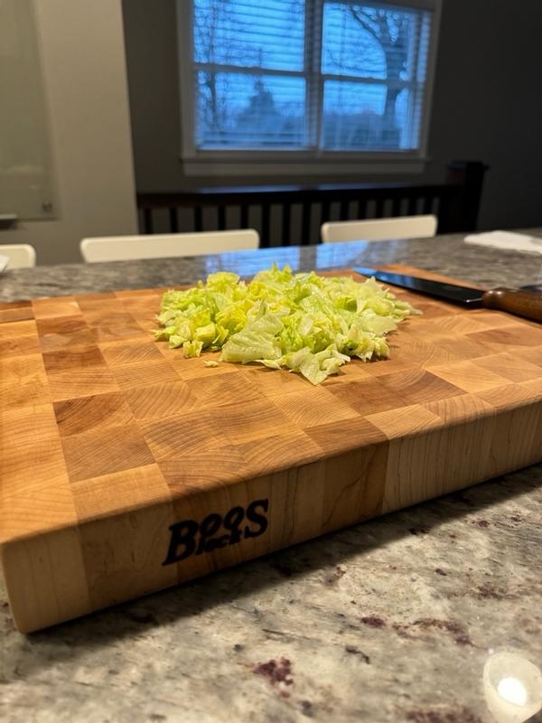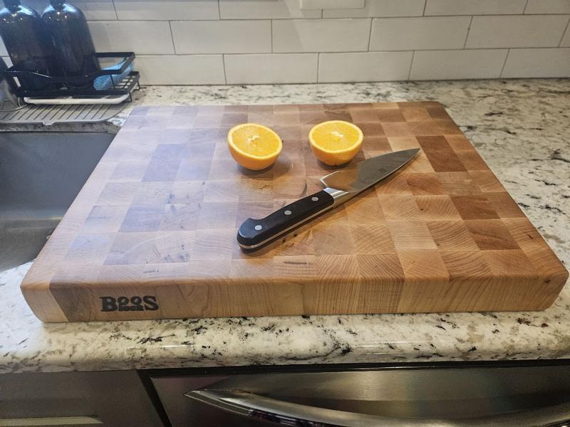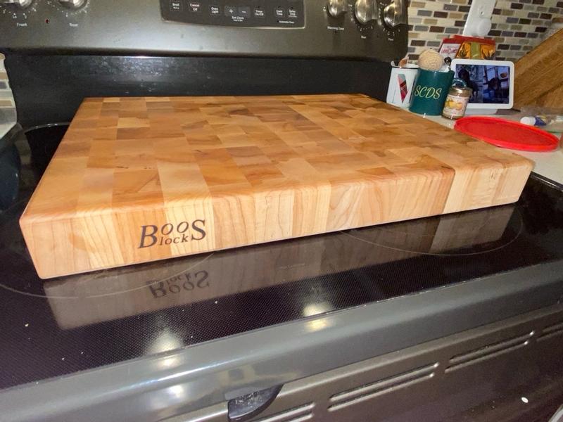 This cutting board is amazing! The quality is exceptional and it looks beautiful. The wood is substantial sourced hand selected maple end grain making this super durable. This cutting board is very solid but that’s expected for a real quality cutting board. Make sure to use the Boos oil for maintenance. This cutting board can stay on my counter all the time. I enjoy using this for prepping in my kitchen makes me feel fancy.