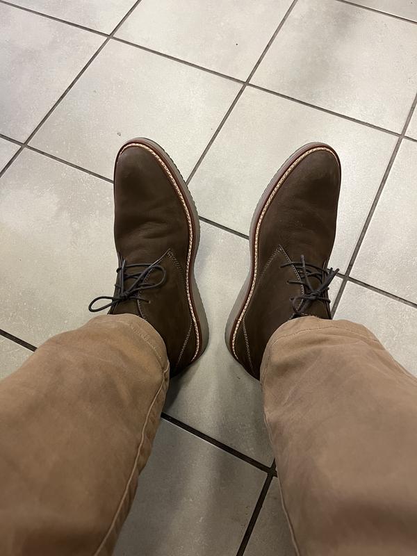 I've always worn black or brown dress shoes but I decided to branch out style-wise with these blue chukka dress boots and I'm glad I did. Not only are these boots more unique looking than your average dress shoe but they are extremely comfortable as well. The insole is super cushy and these are some of the most comfortable shoes I've worn in a while. My only hesitation with these shoes was that the sole is kind of a reddish-brown color and I would've preferred something a little more neutral in color, but overall these are great shoes and seem to be good quality.