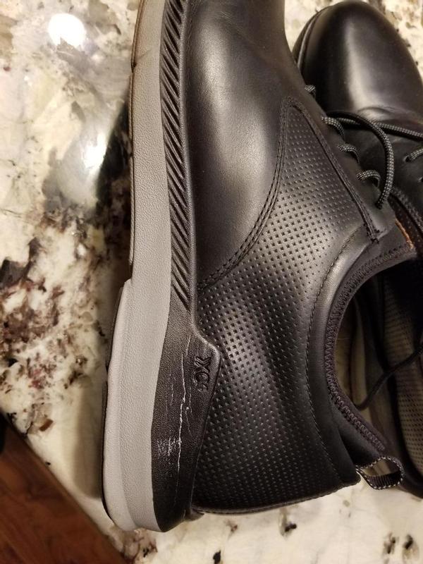 Not very happy. The black around the soles is already cracking and wearing off. Only worn for 2 weeks! I work in a carpeted office so no real wear and tear. I love the XC4 fit and feel, my last pair looked great for 2 years. Not sure what I can do at this point.
