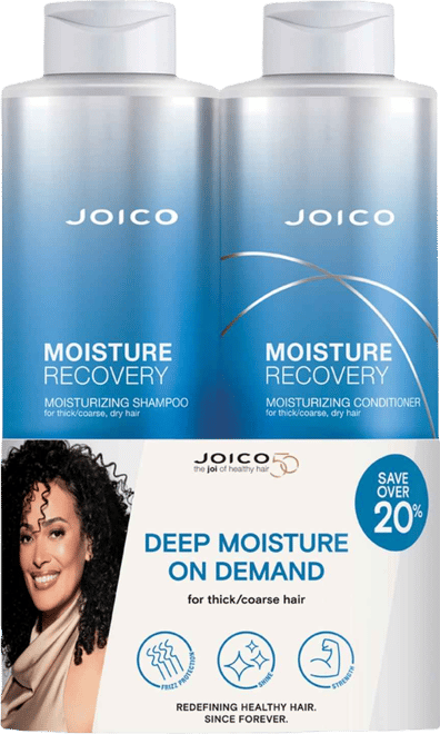 Web ID: 24997326Restoring softness and smoothness to tired hair, this Joico Moisture Recovery shampoo and conditioner duo incorporates jojoba oil for stunning shine. Sea kelp provides targeted nourishment helping to revitalize thick, coarse, and dry textures effectively.