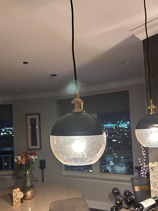 Web ID: 9184259The globe pendant was first popularized by Hicks, but eventually was iterated upon for each new design-loving generation. Here is a modern take that features a champagne-colored smoked glass at the base, the classic black metal top, and brass components to complete the look. Whether hung in a set over a kitchen island, in a row going down a hallway, or individually to brighten a dark nook, this modern update is as versatile as the original.