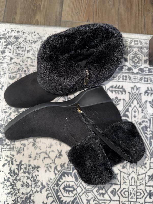 I love these boots. I bought them to replace a pair of Gucci boots similar in style but the Gucci boots rub my right ankle and create sores. I tried these on and the fit perfectly. they are very stylish looking and fit well. I can tuck my Jean hems inside them or let the jeans cover the fur tops. I would buy again