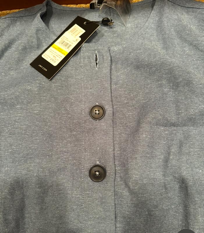 The fit was ok. I a am size 8 with 38inch bust area. I wear size M and it fit perfectly. However, the quality of the fabric is poor linen. And color is more like Gray. It is not light blue as it is pictured on the website.