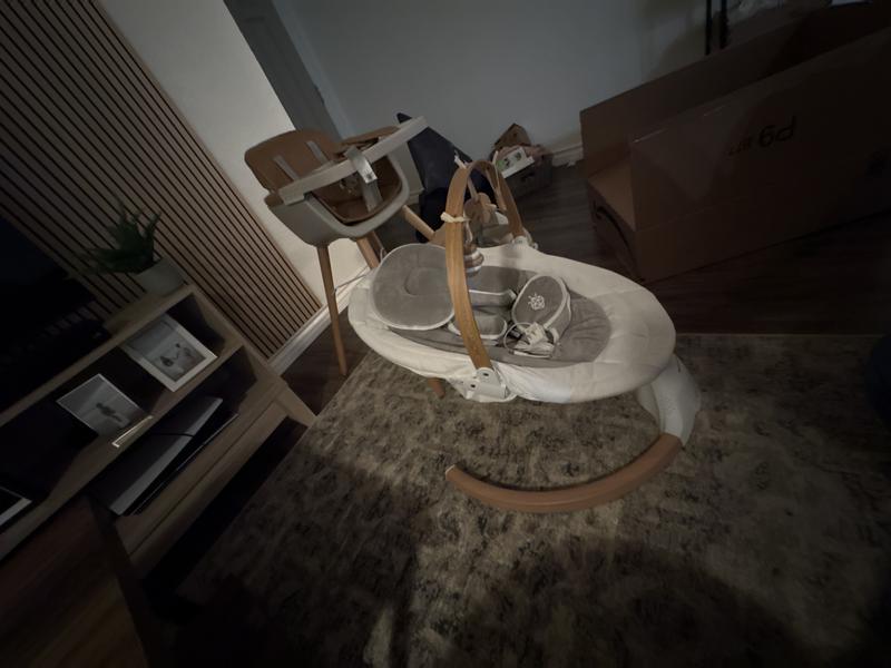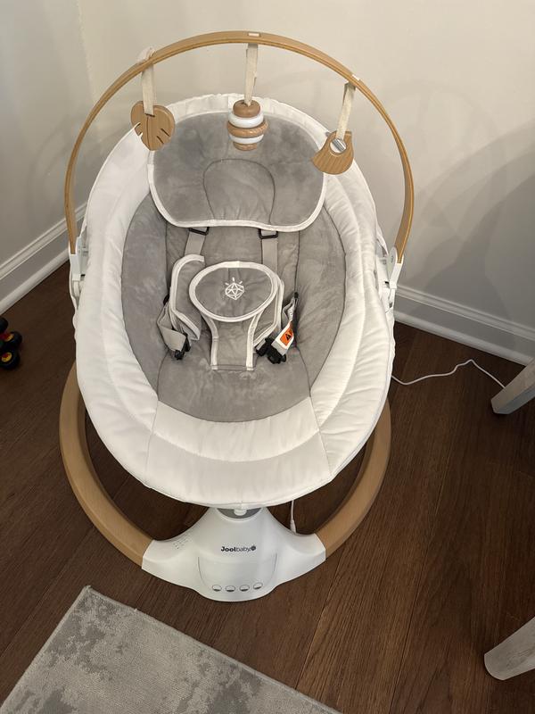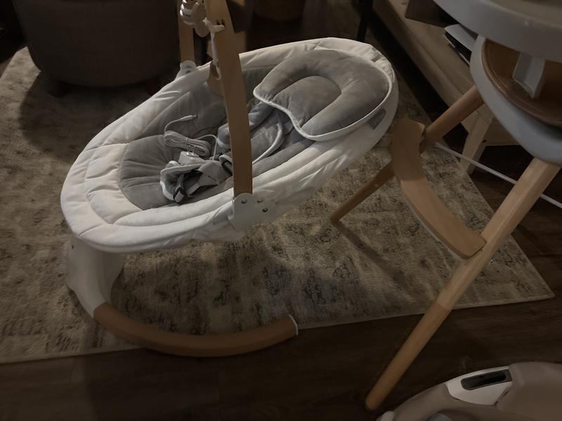 Works well for newborn stage, very comfy for our baby, pretty color, connects to blue tooth very easily. Only complaint is I wish it had a battery option to not need to plug it in