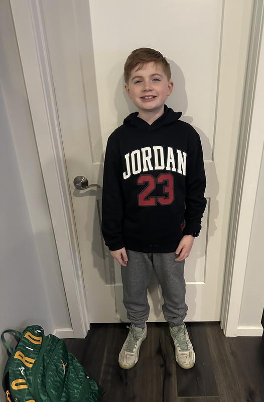 Get back to the basics in style with the Jordan 23 fleece pullover hoodie. This classic sweatshirt is made of soft and cozy fleece and features relaxed, dropped shoulders, comfy ribbed trims, and a classic Jordan 23 logo at the front.