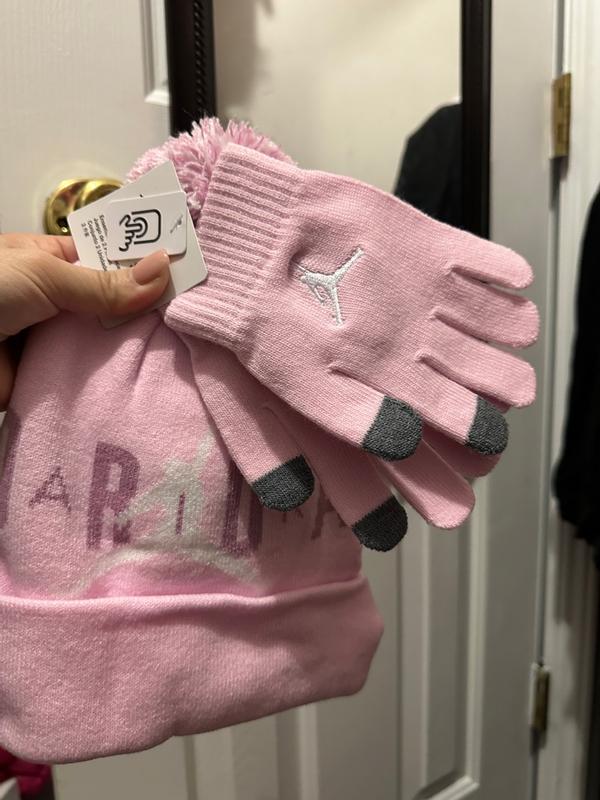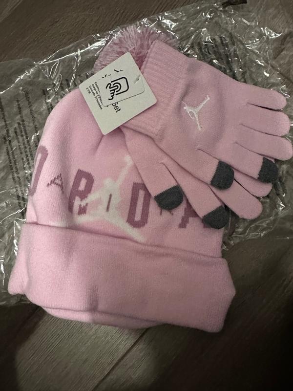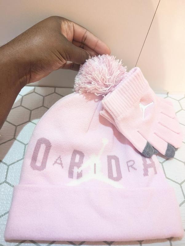 The fit of the Jordan Pom Beanie and Glove set was very comfortable. It felt soft, and the material was nice and stretchy. It was a beautiful shade of pink and kept my head and hands warm.