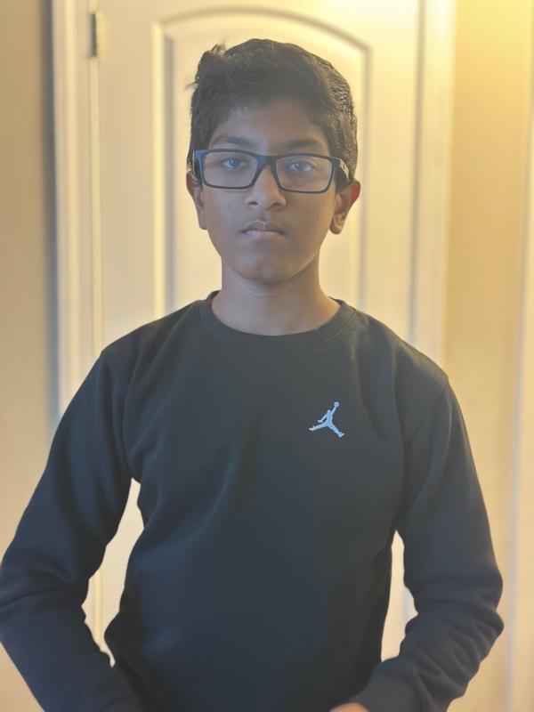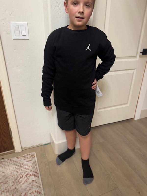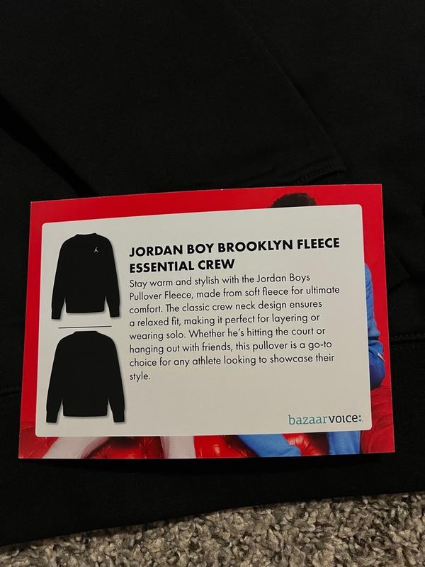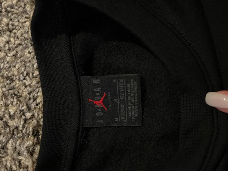 Our little one loves her new Jordan Girl Essential Crew Neck. Great for layering or even by itself. The fabric is lightweight but still gives warmth. The fit is true to size and has some wiggle room for growth. The style goes with everything, especially jeans and leggings. This is a cross between a sweater and a long sleeve shirt. A lavender color that looks premium. She will have this for awhile.