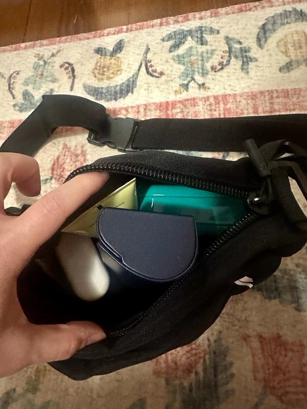 I got this Jordan Jumpman Cross Body Bag for free to try out, and it’s awesome! It’s definitely too big for little kids — my 4-year-old couldn’t wear it even fully tightened — but it’s perfect for teens and adults. There’s tons of space for all your stuff: sunscreen, deodorant, snacks, phone, sunglasses, and more. I love that it can switch from a crossbody/fanny pack style to a shoulder bag. It looks great and goes with almost anything!