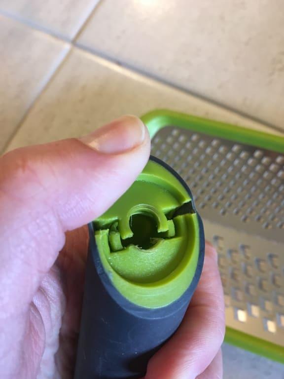Parts of the sharp metal edges stuck out so far that when I put the cover on, then tried to take it off, the cover stuck. Not realizing the issue, once I did get the cover off the grater had grated the cover! Little plastic pieces everywhere. Needless to say, this is being returned. Too bad; I like the design with the twist handle.