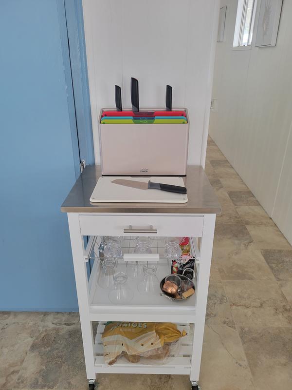 This is a great piece of design imagination that Joseph Joseph are well known for.Very well manufactured and a real addition to a modern kitchen. May seem a little pricey but well worth the money. Most attractive.