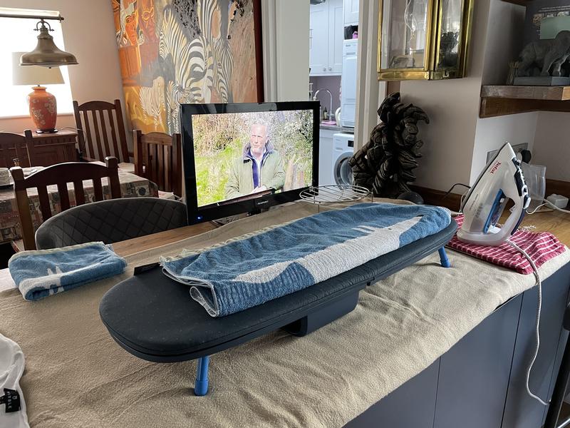 Bought this at a reduced price which made this purchase easier. Don’t really want to iron much anymore but wanted a compact ironing board as sometimes need to use one. I have had a full ironing board in the past and had to put a towel underneath on the floor to catch the drips of water. I am very impressed with the drip lock technology with this board as there was no moisture at all underneath nor any moisture on the fold away legs. I used the board to iron a pillowcase and a shirt just to test it out and both were extremely easy to iron on the board. The size of the board was perfectly adequate for my usage. Board folds away neatly to the side of my utility worktop. Happy with this purchase.