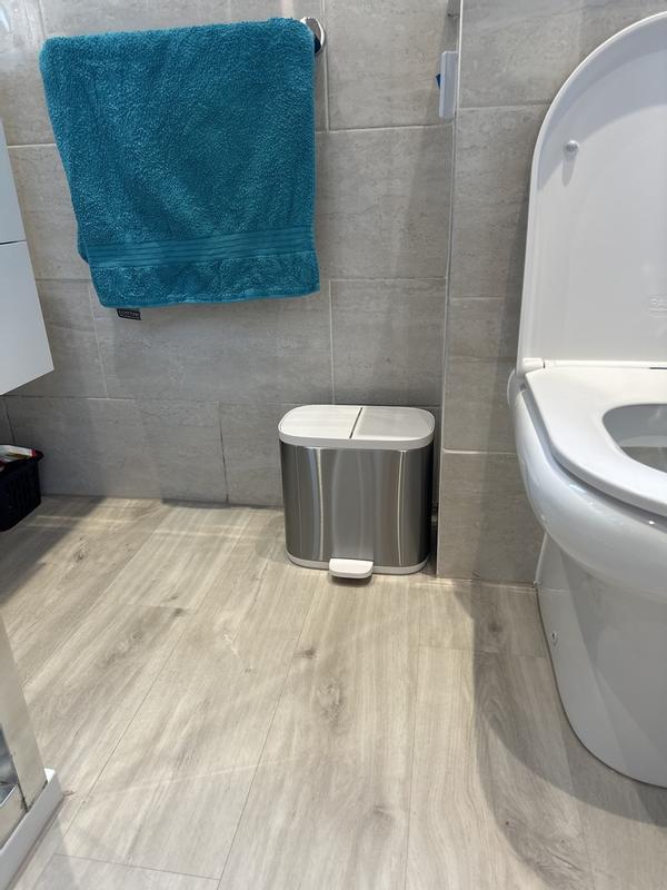 An excellent product which enables re-cycling to be put in one side and general waste in the other. It is slimline and fits nicely alongside a bathroom unit. It is very good quality and I love the slow opening and closure of the lid.