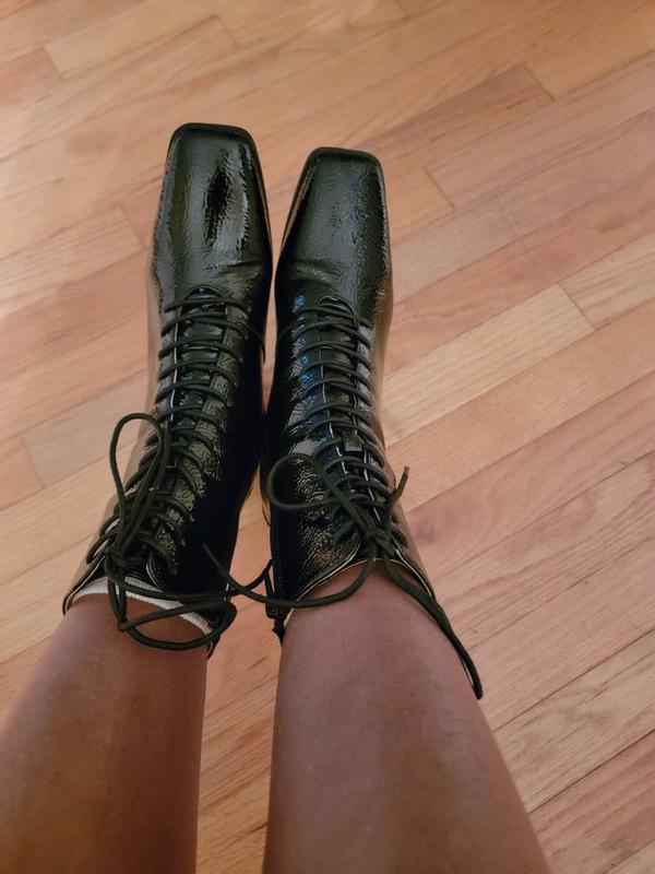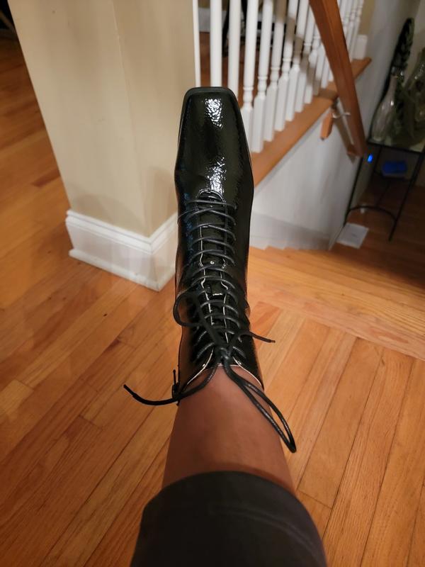 The most comfortable boot I’ve worn in a while. I have a flat foot so the heel is wide enough to maintain balance and strength. I love a cool patent look that’s makes a shoe stylish and fun. This boot is a perfect height for my legs because it’s above the ankle but below the knee which is giving an amazing mid-high sexy but professional appeal!