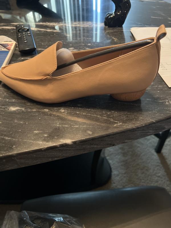 I just received these loafers and am very happy with the style and fit. I ordered my regular size 7.5 and the fit is good. The wooden heel is a nice finish to this loafer.