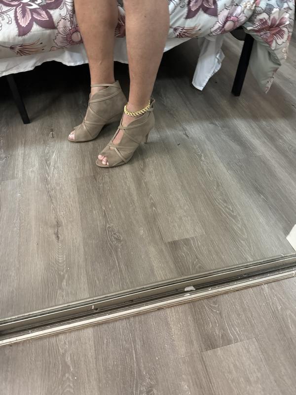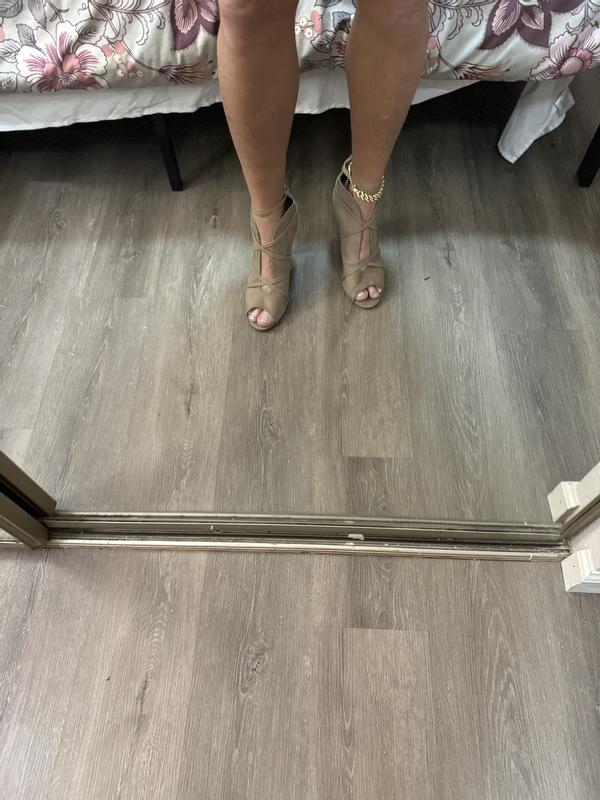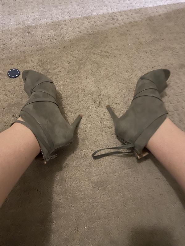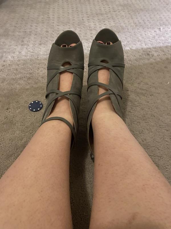 That black suede bootie is beautiful. I have big feet,(11W)& Always get compliments on this shoe!! I wish I'd gotten the camel color, now they're out! The only thing after a while the straps kinda unfold? But that's a problem that can be fixed. Shoe repairman, here I come!!
