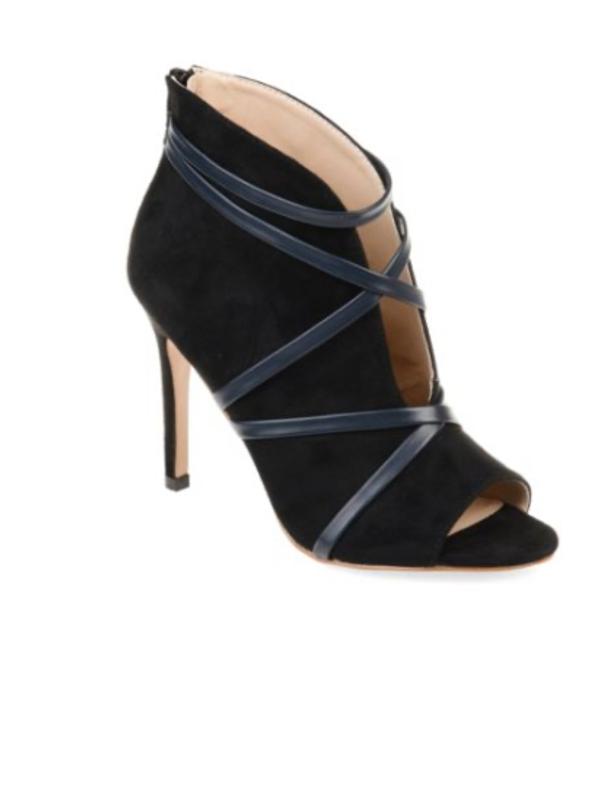 Step into chic style with the Samara booties by Journee Collection. These peep-toe booties have been re-imagined with cutout faux leather and an asymmetrical strap detail. The deep open slit and stiletto heel add gorgeous detail to finish the design.