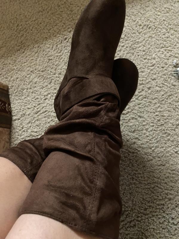 These boots are cute but not very good quality. The suede is so so, and the fit and comfort level is so so. No support. They were quite inexpensive so I guess they were worth the price. I am keeping them bc they were so cheap, but you get what you pay for. I wouldn't buy them again or recommend them. I was looking for a scrunch style boot and I got it.
