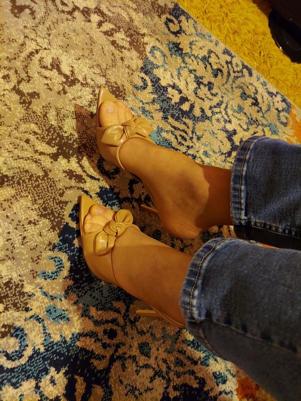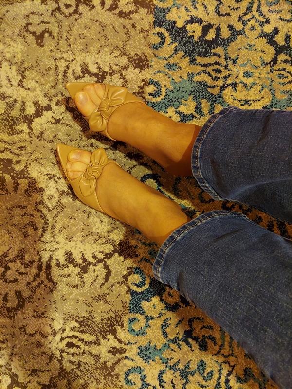 Love these with the bow and pointed toes! These are a "go to" for after work and special occasions but are just as great for sprucing up jeans and pantsuits. They do run true to size. These should be a "must have".