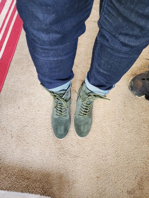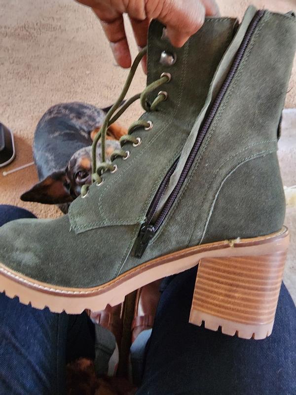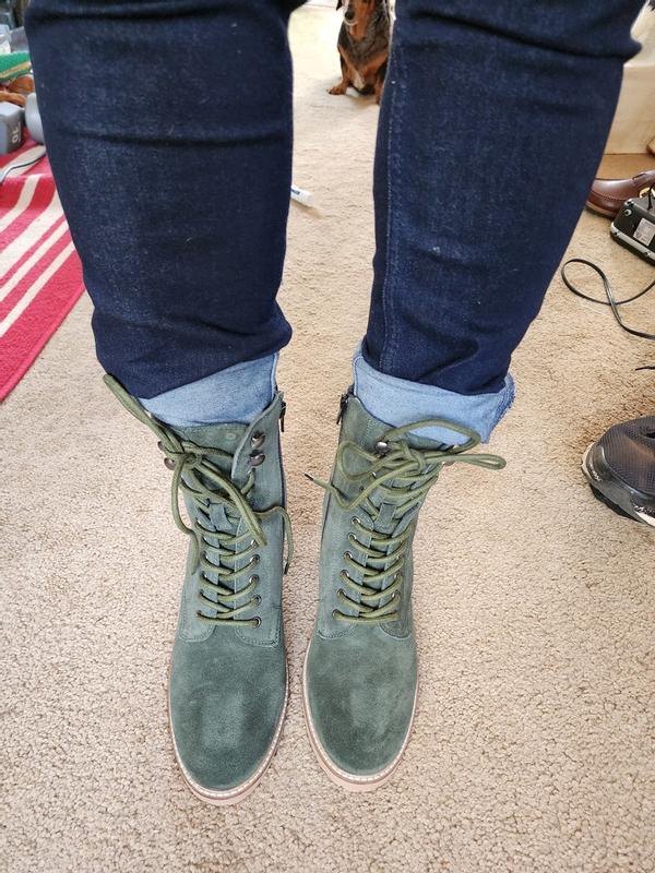 I love these boots. I bought them in the sand color and love the suede material. They are comfortable and easy to walk in. Would highly recommend them. True to size also.