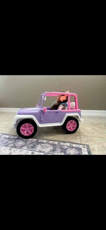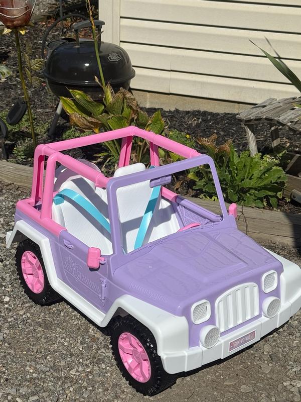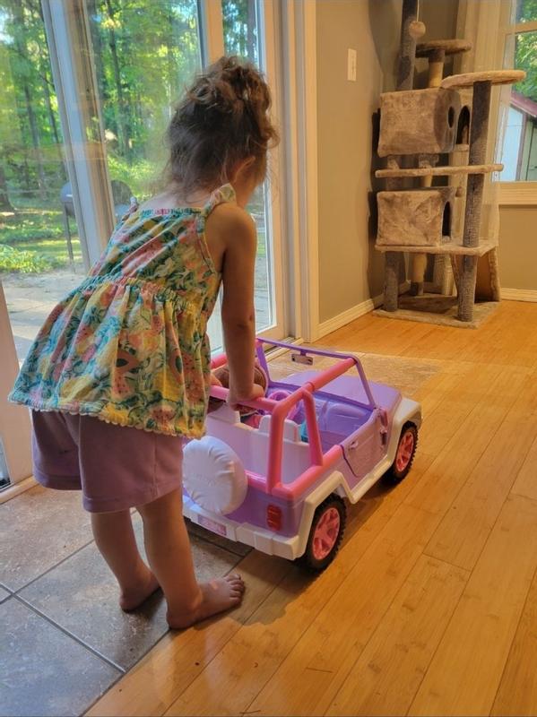 This us the jeep of my dreams! Christmas time is co.ing so I've been looking h for gifts to stock up early. While thinking of my niece I wondered "what is something I loved when I was her age?" Then I engenders when I was given a remote controlled barbie dream car. O cherished that car for so long o felt all my dreams were coming true. When I came across this jeep I thought it would be a great little jeep to drive her dolls around. This is NOT small, this is huge, the jeep reaches my knees and I'm 5'9. It is not remote controlled but I think it's great without it, it's so much fun to put your doll (or tiny dog, no jusgement) inside and push this jeep around. I can see her gliding it around the home, making pit stops and giving her driver sunglasses to match the cool singer breeze pink aesthetician. I can't wait to see her face when I give her the keys to her first jeep.