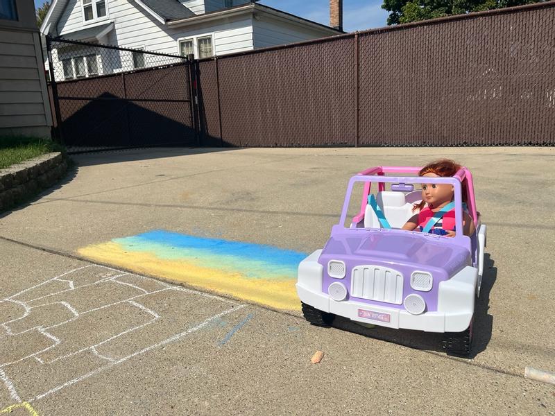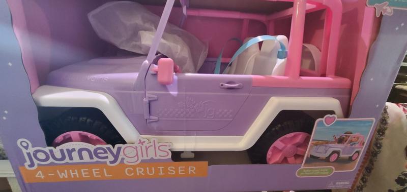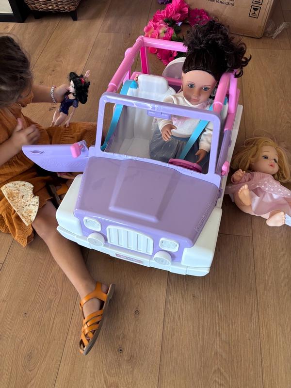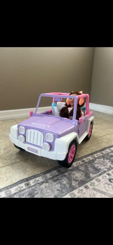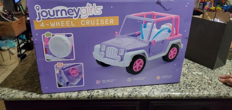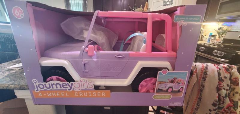 I received this product in exchange for my honest review. The Journey Girls Accessory Jeep is absolutely incredible! While the dolls are rated at 6+, my daughter is much younger and absolutely loves playing with this Jeep. I also have no worries about her using it as there aren't many small parts for me to worry about. The Jeep is very large and stands about 14.5" tall and is 23" long x 15" wide! What I love most about this is that the doors open and close, and the seat belts can actually be used to buckle in Journey Girls dolls or any favorite stuffed animal! The Jeep is very sturdy overall, though the doors are a little flimsy and don't stay closed that well. It rolls great in a straight line but does take a little effort to turn, though my daughter seems to have no issues pushing this thing all around the house! Overall, this is a great toy and my daughter absolutely loves it, and that's what matters most!