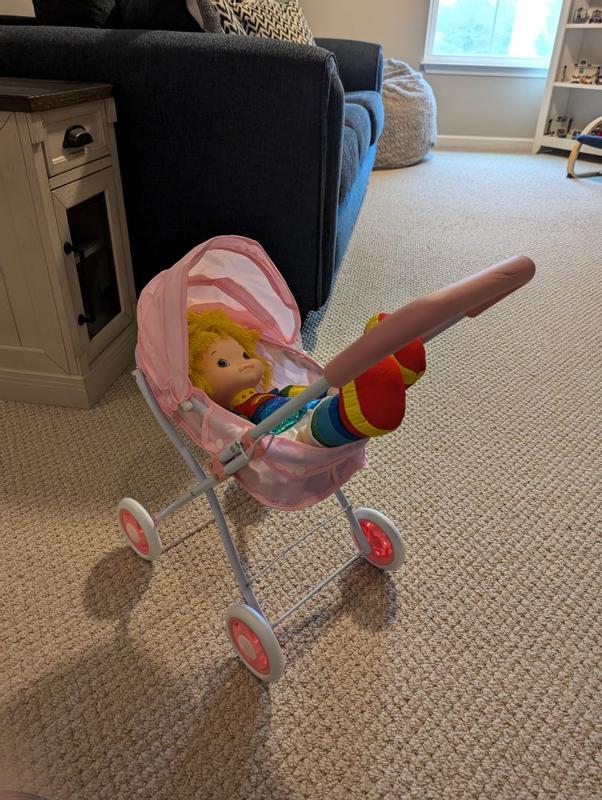 My daughter was delighted with this as her birthday gift. She takes her dolls on walks and loves its lovely colors as well as how smoothly it wheels.