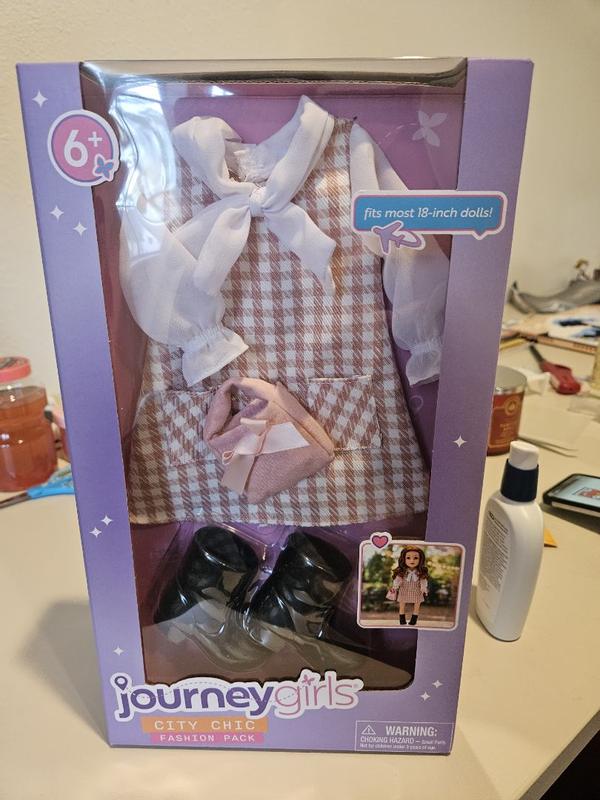 The Journey Girls City Chic Fashion Pack is absolutely adorable! 🥰 The outfit is stylish and well-made, with cute details like the bow and matching accessories. The fabric is so soft. It fits 18-inch dolls perfectly. A great value for any doll lover—highly recommended!