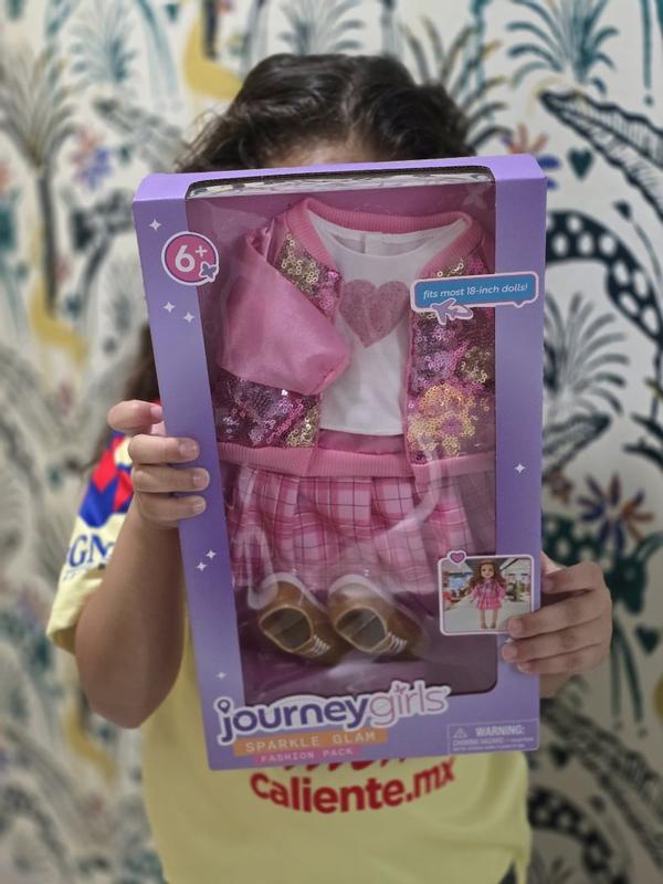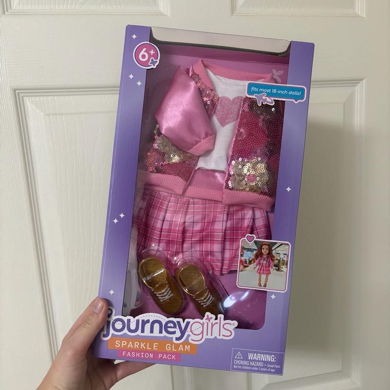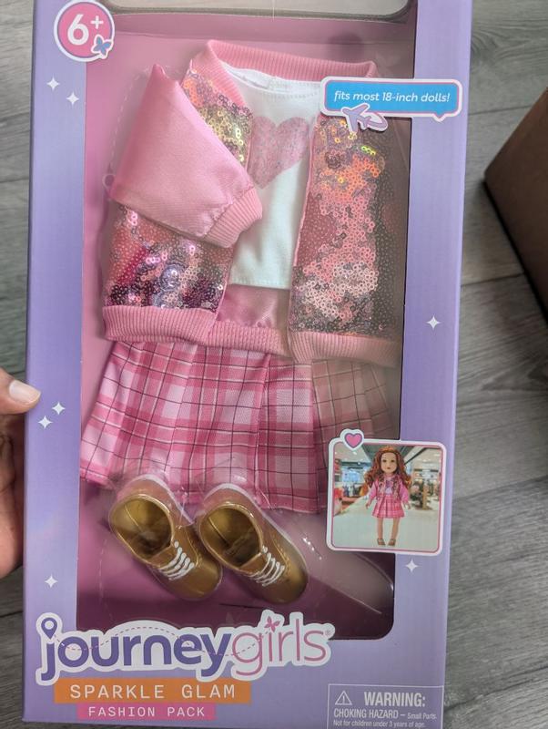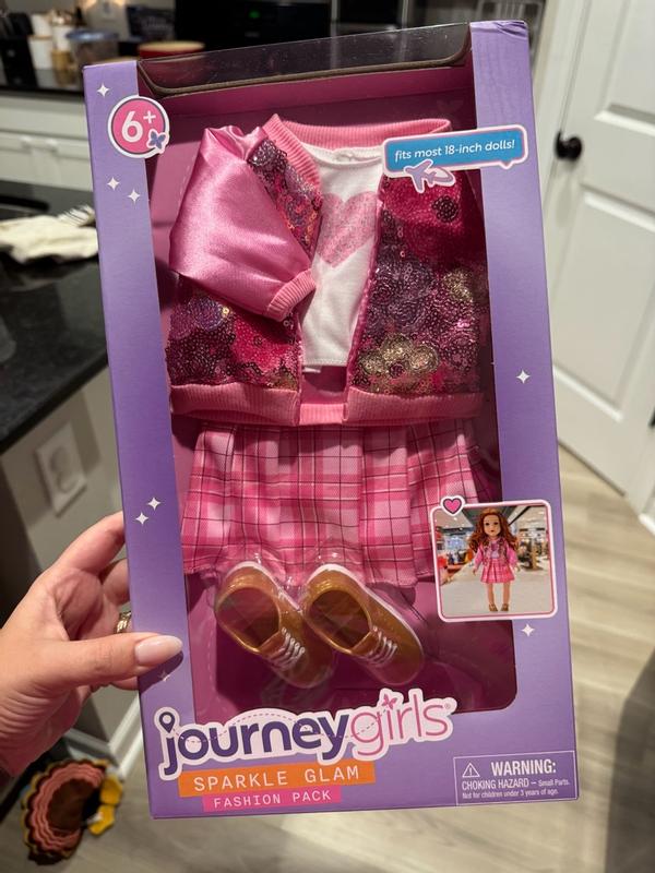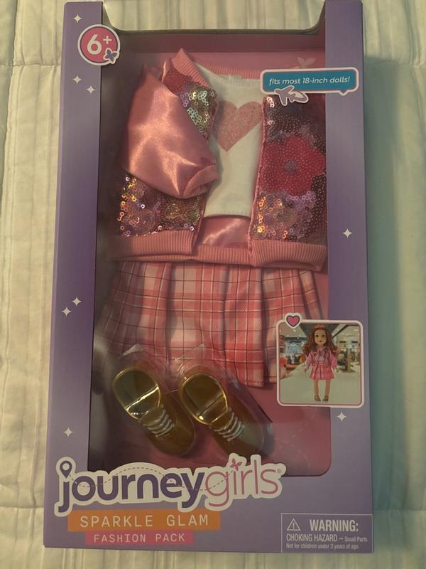 My daughter absolutely loved this Journey Girls Sparkle Glam Fashion Pack! She thought the sparkly jacket and cute skirt were adorable and couldn’t wait to dress her doll. We don’t own a Journey Girl doll, but the outfit fit nicely on her Our Generation doll—just note that the shoes were too small to go on. The packaging was really nice, too, with all the items clearly visible. Overall, a fun and stylish outfit set!