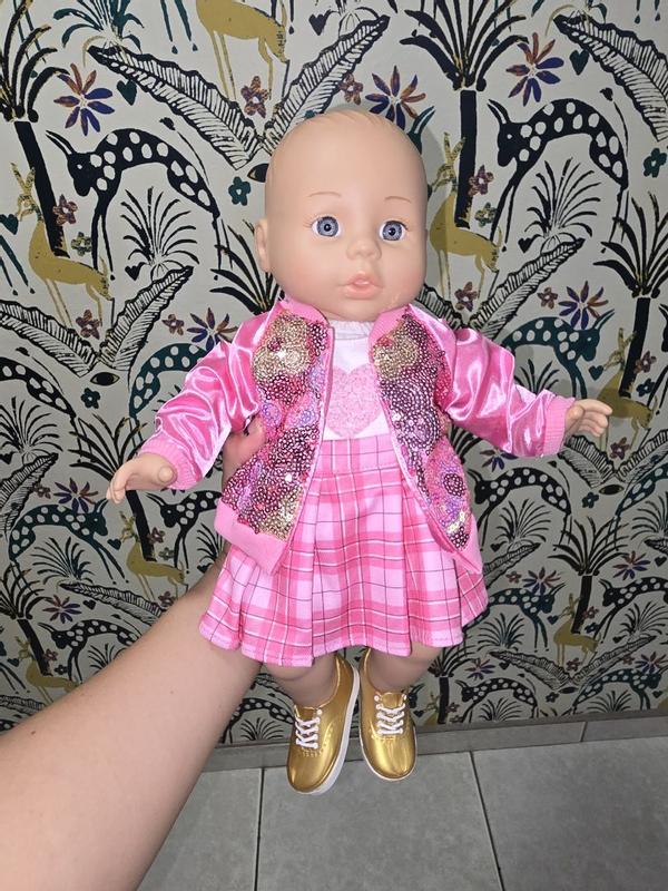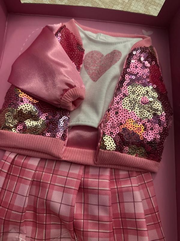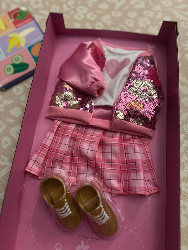 My daughter and I are very into 18” dolls right now, so I was so excited to get this outfit set for us. The packaging is simple but effective and the outfit is so cute!! I adore the sequin jacket and the sneakers. The quality is really good for the price point, as well. I highly recommend this brand for any dolls of this size.