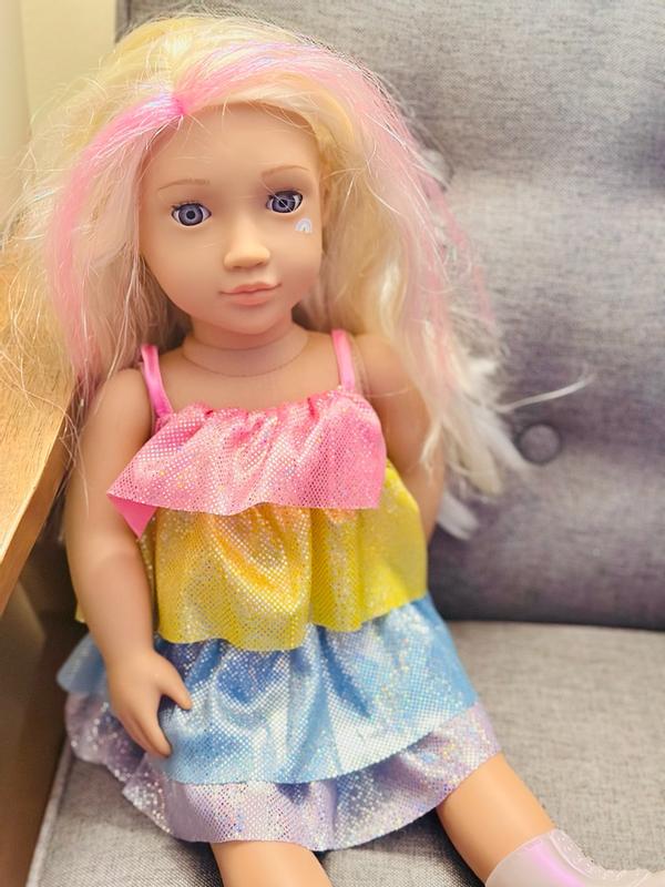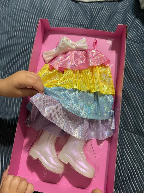 My daughter loves this!!! The outfit fits my daughter’s dolls pretty well. She loves the glitter in the dress and adores the iridescent boots and matching headband! Some parts of the dress are thin but overall I think this will last for a while.