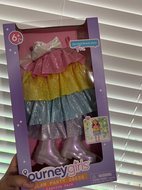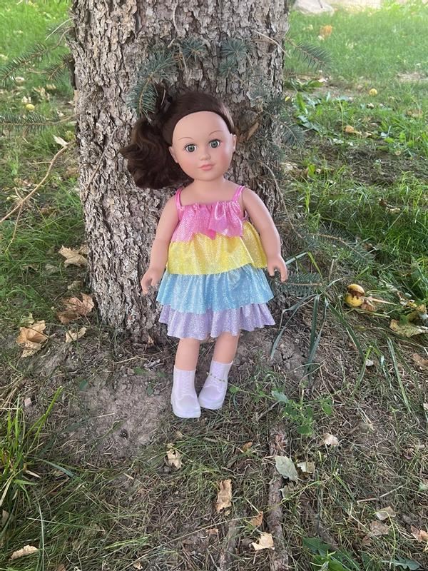 Super happy with this brand and quality. Fraction of cost as name brand doll clothes and it fits perfectly on any 18inch doll. My nieces loves the colors and sparkle factor. Cute packaging and pretty easy to take out and use right away. So far has held up great with lots of dressing and undressing