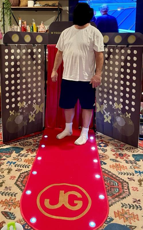 This kid’s fashion runway is so adorable and will keep my kids busy for hours! Took around 30 minutes to fully set up. Takes 3 AAA batteries to light up the runway. The red Velvet curtains make the whole thing feel realistic! Easy to take apart and store when not in use but my kids will be using this every day I am sure, because the options are endless for play. Comes with a clothes rack and hanging mirror. For the price I am very impressed! Set up tip: slide the divider curtains on from the bottom rod first as they seem to go on easier that way. Last picture shows my 5’8” Husband standing next to it for size reference.