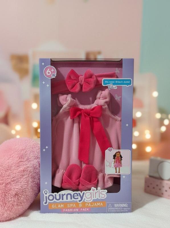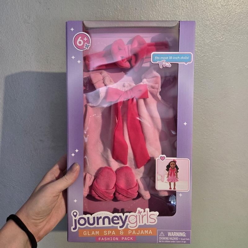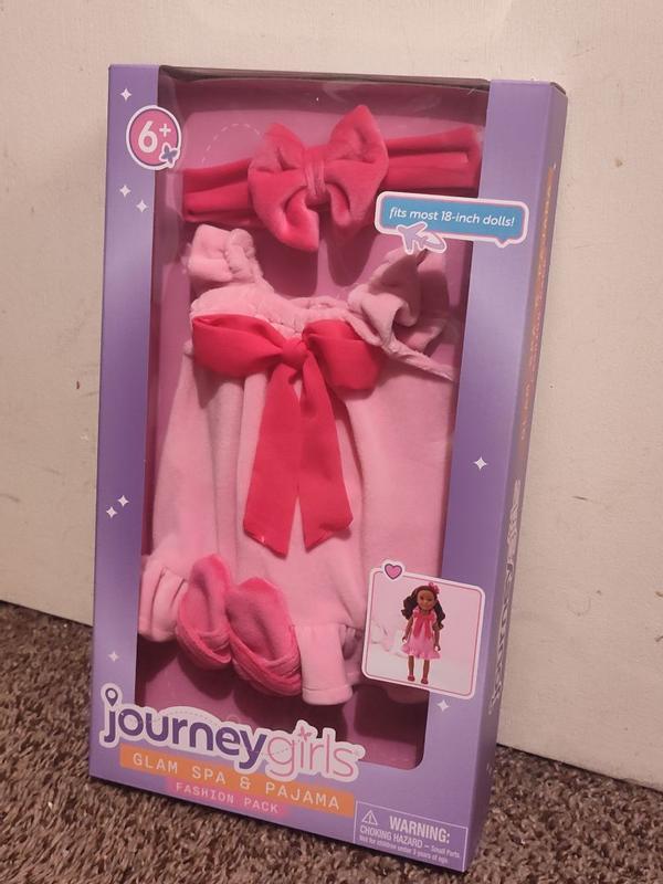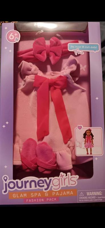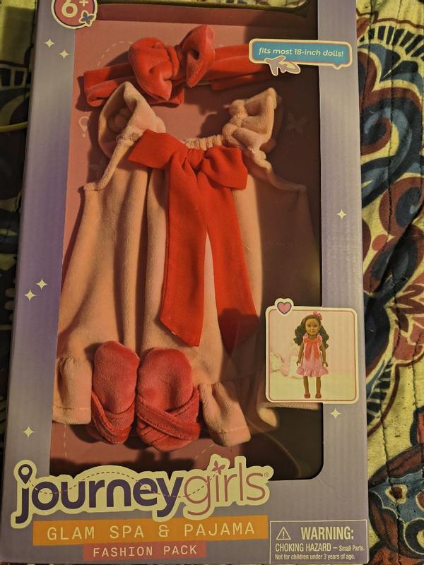This Journey Girls pajama set is absolutely adorable! The soft pink robe with the bright bow looks so cute on 18-inch dolls, and the matching slippers and headband are such a nice touch. Everything feels well made and easy to put on, which is perfect for kids who love to dress up their dolls. It definitely adds a fun spa-night vibe and makes playtime more creative. Fits my doll perfectly (it should work on most 18-inch dolls like American Girl too). A great little set for the price — highly recommend for any doll lover! Very well made and the package is secure.